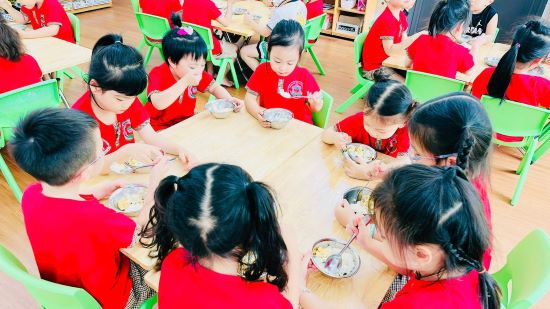 Các bữa ăn trong ngày của trẻ mầm non luôn được chuẩn bị chu đáo, đầy đủ chất dinh dưỡng, đảm bảo vệ sinh an toàn thực phẩm!