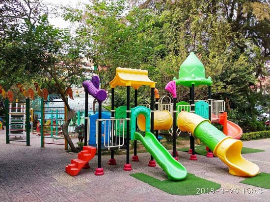 Từng mét vuông được bố trí các khu vực cho trẻ hoạt động vui chơi, học tập một cách khoa học, hợp lý, sân chơi được phân chia thành 6 khu vực: sân tập thể dục buổi sáng, khu chơi vận động thể thao; khu vực chơi với cát, nước; khu vực trồng rau chăm sóc con vật; khu vườn cổ tích và đặc biệt trên núi đá được tạo thành 1 đồi thiên văn với các trò chơi khám phá, tận dụng tối đa cơ hội cho trẻ được trải nghiệm với các khu vực và thiết bị ngoài sân trường.