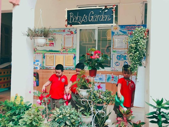 Để tạo không gian cho trẻ gần gũi với cỏ cây hoa lá, các