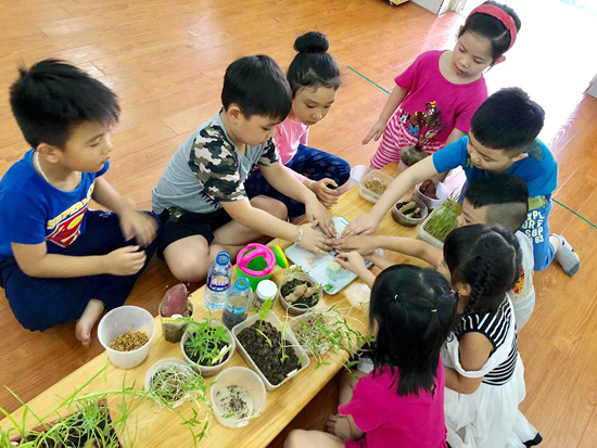 Khám phá khoa học là phương tiện để giao tiếp và làm quen với môi trường xung quanh, hình thành và nhận thức sự vật, hiện tượng xung quanh mà giáo dục thái độ ứng xử đúng đắn với thiên nhiên, với xã hội cho trẻ. Thông qua môn học này hình thành cho trẻ kỉ năng quan sát, tư duy, phân tích tổng hợp khái quát. Khám phá khoa học với trẻ mầm non là quá trình tham gia các hoạt động thăm dò, tìm hiểu thế giới tự nhiên qua đó giúp trẻ được hoạt động và tự phục vụ bản thân. Sau đây là một số hình ảnh trong tiết học khám phá “Sự phát triển của cây xanh từ hạt” của các bé trường Mẫu giáo Kim Đồng I: