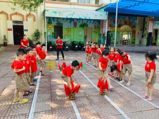 động ngoài trời là một trong những hoạt động vui chơi giúp trẻ mầm non hứng thú